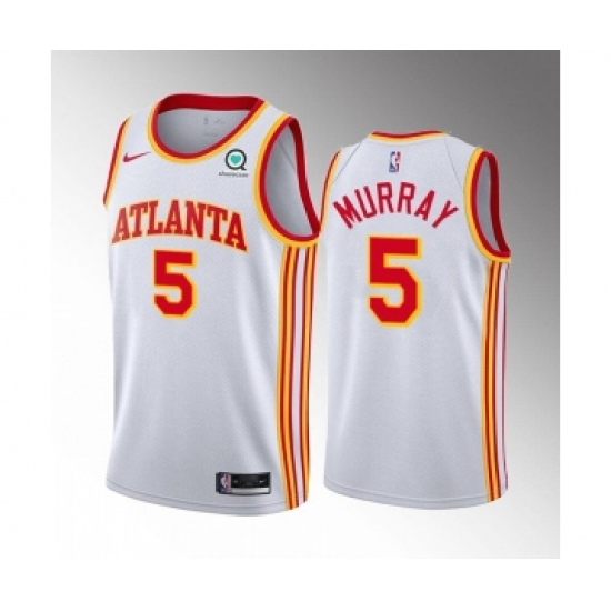 Men's Atlanta Hawks #5 Dejounte Murray White Stitched Jersey