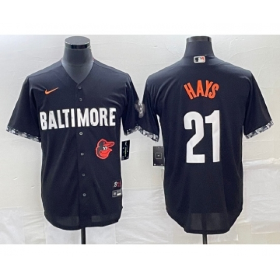 Men's Baltimore Orioles #21 Austin Hays Black 2023 City Connect Cool Base Stitched Jersey 1