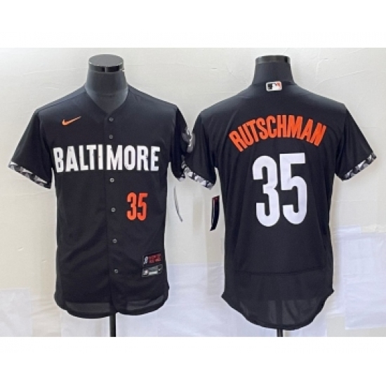 Men's Baltimore Orioles #35 Adley Rutschman Number Black 2023 City Connect Flex Base Stitched Jersey 1