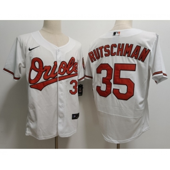 Men's Baltimore Orioles #35 Adley Rutschman White Stitched Flex Base Nike Jersey