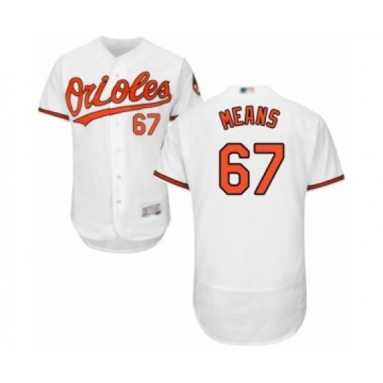 >Men's Baltimore Orioles #67 John Means White Home Flex Base Authentic Collection Baseball Jersey