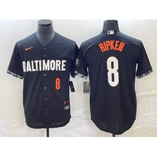 Men's Baltimore Orioles #8 Cal Ripken Jr Number Black 2023 City Connect Cool Base Stitched Jersey 1