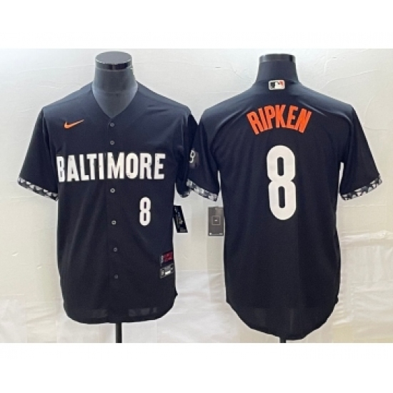 Men's Baltimore Orioles #8 Cal Ripken Jr Number Black 2023 City Connect Cool Base Stitched Jersey 2