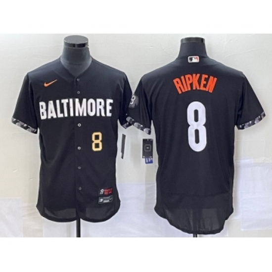 Men's Baltimore Orioles #8 Cal Ripken Jr Black 2023 City Connect Flex Base Stitched Jersey