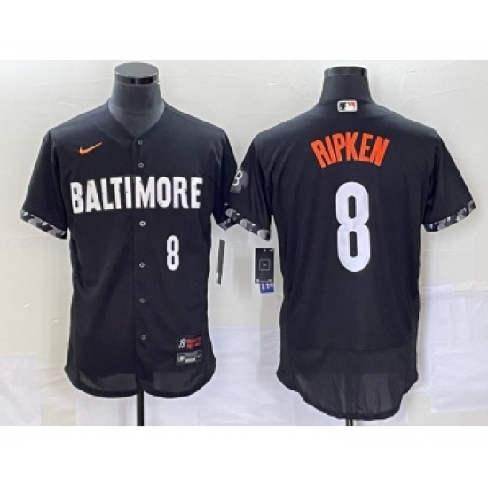 >Men's Baltimore Orioles #8 Cal Ripken Jr Number Black 2023 City Connect Flex Base Stitched Jersey