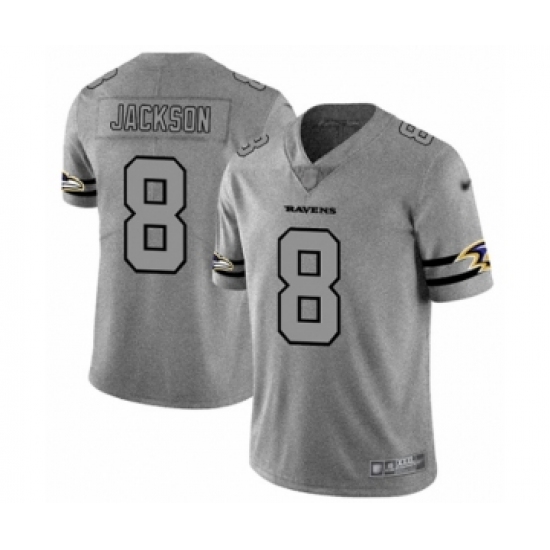 >Men's Baltimore Ravens #8 Lamar Jackson Limited Gray Team Logo Gridiron Football Jersey
