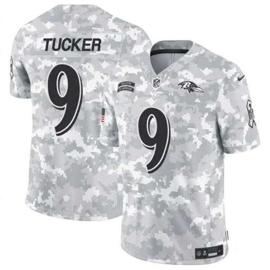 Men's Baltimore Ravens #9 Justin Tucker 2024 F.U.S.E. Arctic Camo Salute to Service Limited Football Stitched Jersey