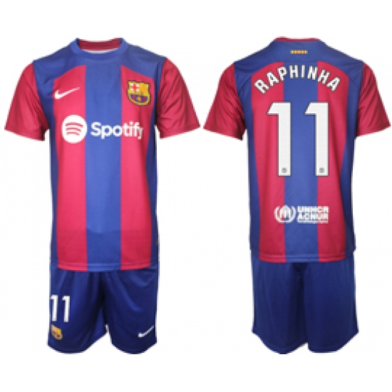 Men's Barcelona #11 Raphinha Blue Red 2023-24 Home Soccer Jersey