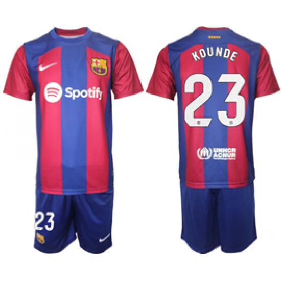 Men's Barcelona #23 Kounde Blue Red 2023-24 Home Soccer Jersey