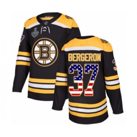 Men's Boston Bruins #37 Patrice Bergeron Authentic Black USA Flag Fashion 2019 Stanley Cup Final Bound Hockey Jersey