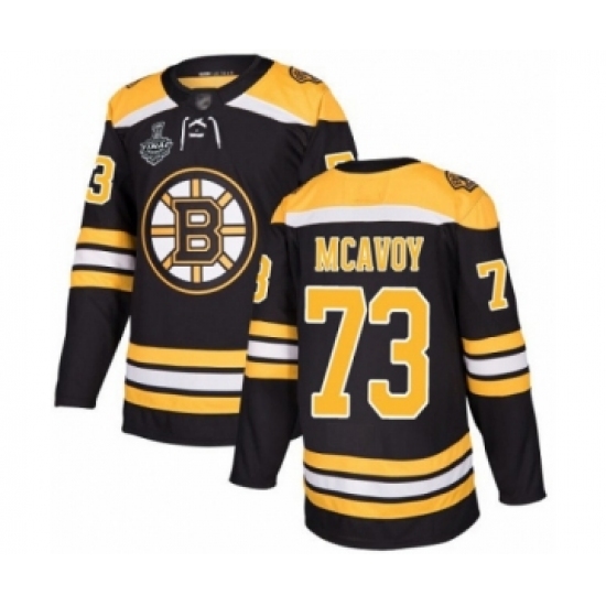 Men's Boston Bruins #73 Charlie McAvoy Authentic Black Home 2019 Stanley Cup Final Bound Hockey Jersey