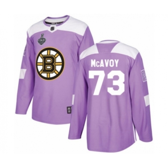 Men's Boston Bruins #73 Charlie McAvoy Authentic Purple Fights Cancer Practice 2019 Stanley Cup Final Bound Hockey Jersey