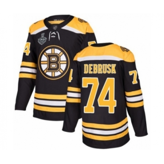Men's Boston Bruins #74 Jake DeBrusk Authentic Black Home 2019 Stanley Cup Final Bound Hockey Jersey