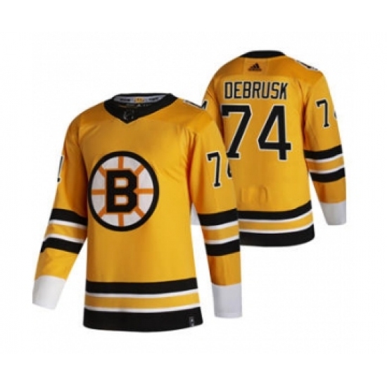 Men's Boston Bruins #74 Jake DeBrusk Yellow 2020-21 Reverse Retro Alternate Hockey Jersey
