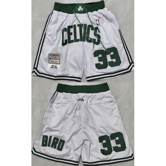 Men's Boston Celtics #33 Larry Bird White Shorts (Run Small)