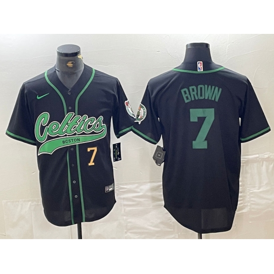 Men's Boston Celtics #7 Jaylen Brown Number Black Cool Base Stitched Baseball Jersey