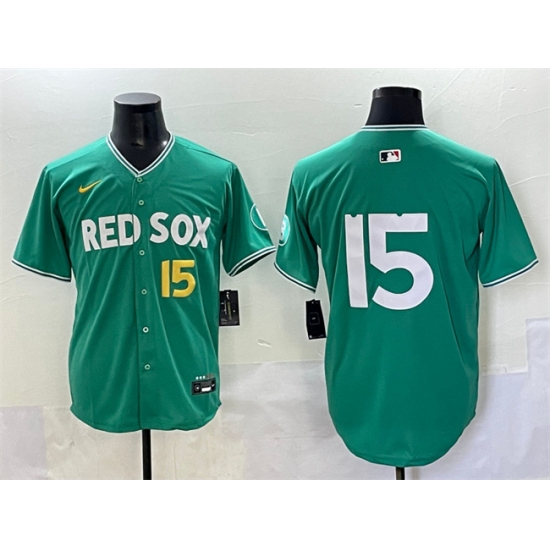 >Men's Boston Red Sox #15 Dustin Pedroia Green 2025 City Connect Limited Stitched Baseball Jersey