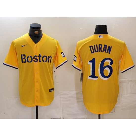 Men's Boston Red Sox #16 Jarren Duran Gold City Connect Stitched Baseball Jersey