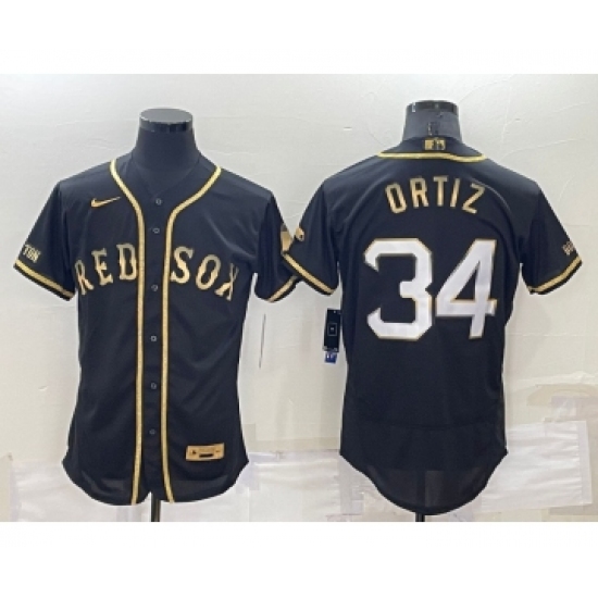Men's Boston Red Sox #34 David Ortiz Black Gold Flex base Stitched Baseball Jersey