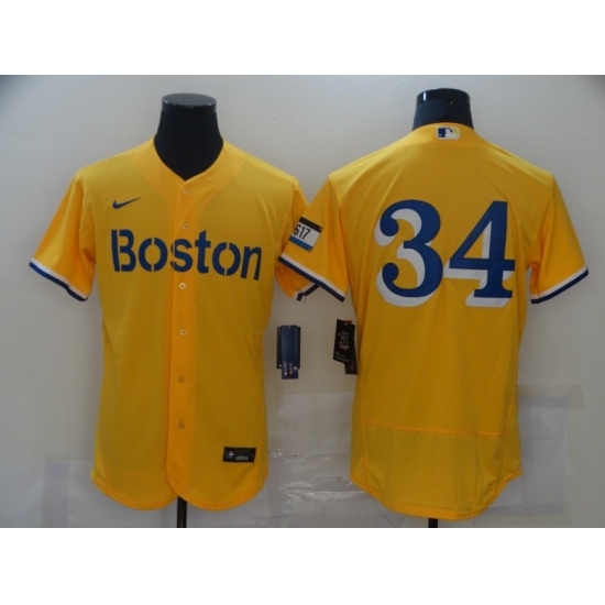 Men's Boston Red Sox #34 David Ortiz Nike Gold-Light Blue 2021 City Connect Jersey