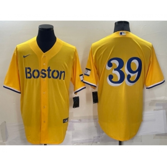>Men's Boston Red Sox #39 Christian Arroyo Gold No Name 2021 City Connect Stitched MLB Cool Base Nike Jersey