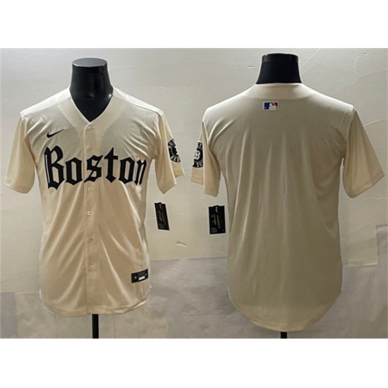 >Men's Boston Red Sox Blank Cream Gothic Vapor Limited Stitched Baseball Jersey