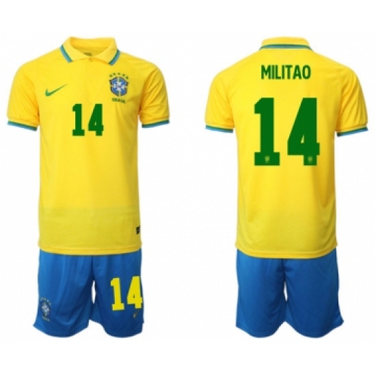 Men's Brazil #14 Militao Yellow Home Soccer Jersey Suit