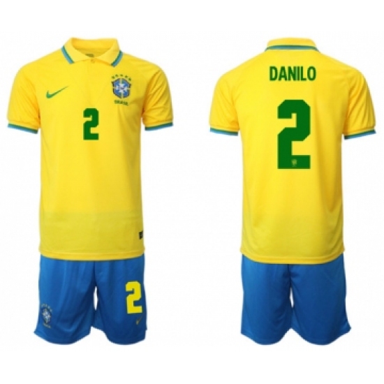 >Men's Brazil #2 Danilo Yellow Home Soccer Jersey Suit