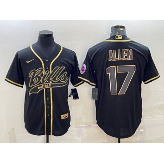 >Men's Buffalo Bills #17 Josh Allen Black Gold With Patch Cool Base Stitched Baseball Jersey