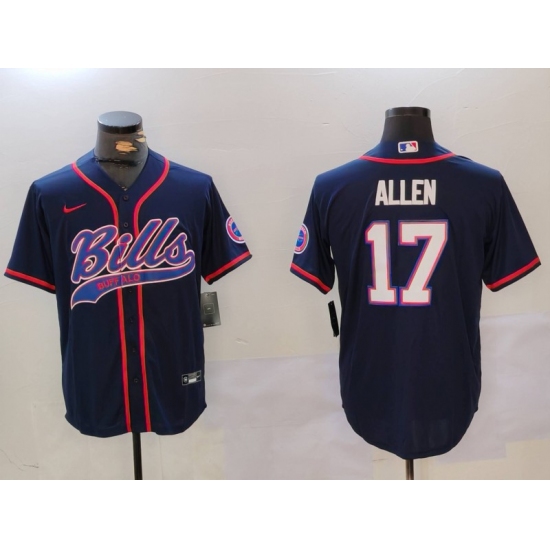 >Mens Buffalo Bills #17 Josh Allen Navy Team Cool Base Stitched Baseball Jersey