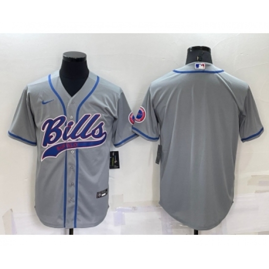Men's Buffalo Bills Grey Team Big Logo With Patch Cool Base Stitched Baseball Jersey