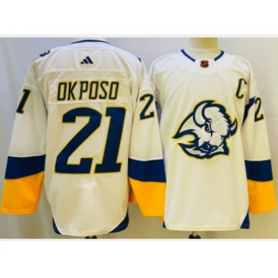 >Men's Buffalo Sabres #21 Kyle Okposo White 2022 Reverse Retro Authentic Jersey