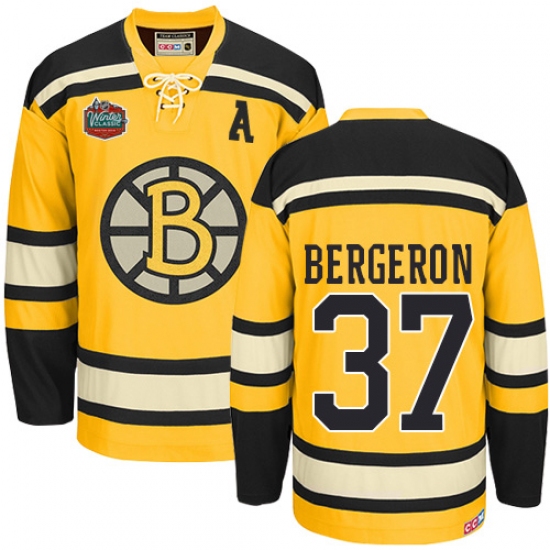Men's CCM Boston Bruins #37 Patrice Bergeron Authentic Gold Winter Classic Throwback NHL Jersey