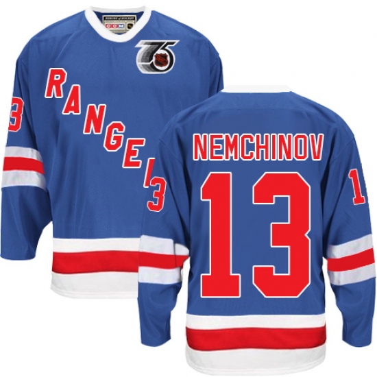 Men's CCM New York Rangers #13 Sergei Nemchinov Authentic Royal Blue 75TH Throwback NHL Jersey