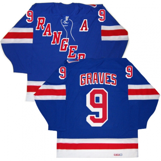 Men's CCM New York Rangers #9 Adam Graves Authentic Royal Blue New Throwback NHL Jersey
