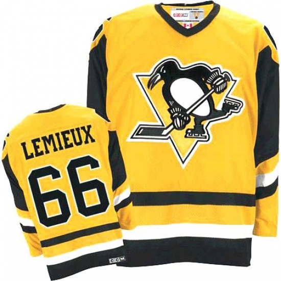 Men's CCM Pittsburgh Penguins #66 Mario Lemieux Premier Yellow Throwback NHL Jersey