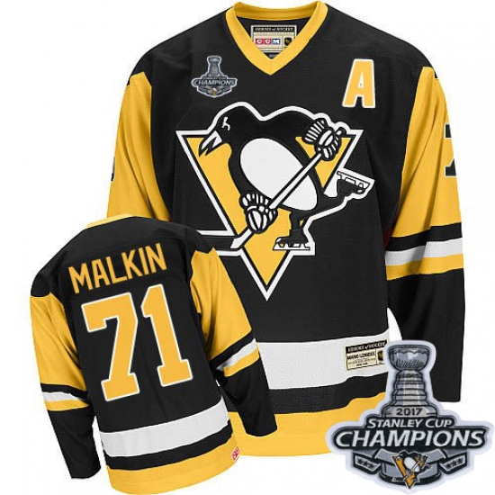 Men's CCM Pittsburgh Penguins #71 Evgeni Malkin Authentic Black Throwback 2017 Stanley Cup Champions NHL Jersey