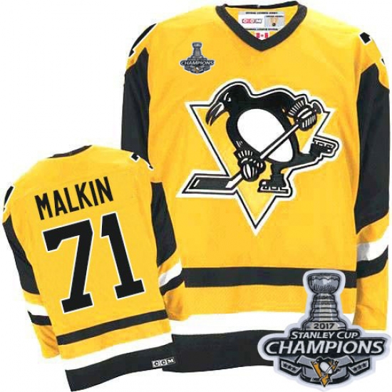 Men's CCM Pittsburgh Penguins #71 Evgeni Malkin Premier Gold Throwback 2017 Stanley Cup Champions NHL Jersey