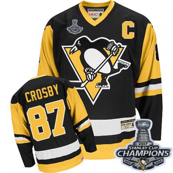 Men's CCM Pittsburgh Penguins #87 Sidney Crosby Authentic Black Throwback 2017 Stanley Cup Champions NHL Jersey