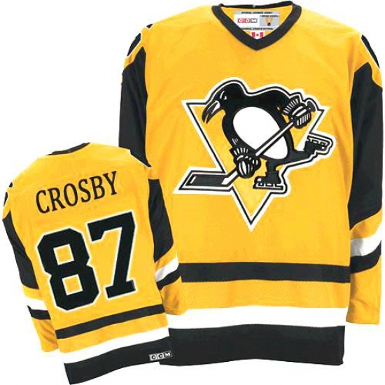Men's CCM Pittsburgh Penguins #87 Sidney Crosby Authentic Yellow Throwback NHL Jersey