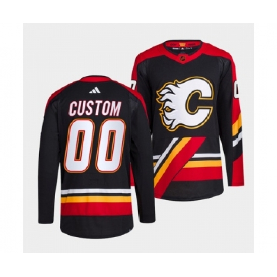 >Men's Calgary Flames Custom Black 2022-23 Reverse Retro Stitched Jersey
