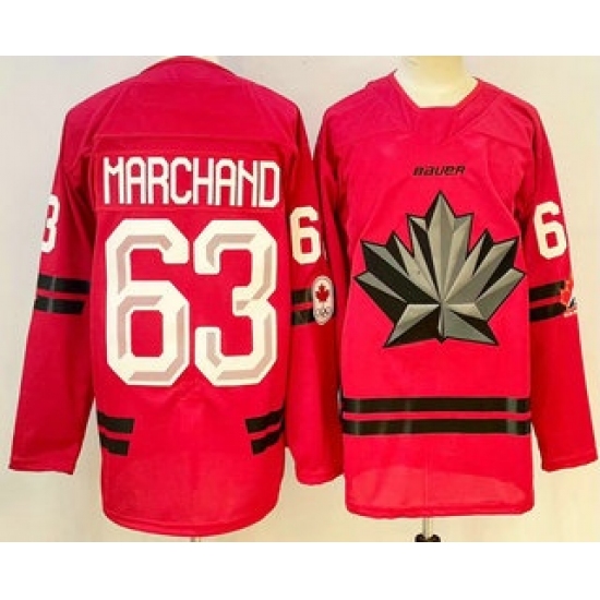 >Men's Canada Hockey #63 Brad Marchand Red 2026 Olympics Authentic Jersey