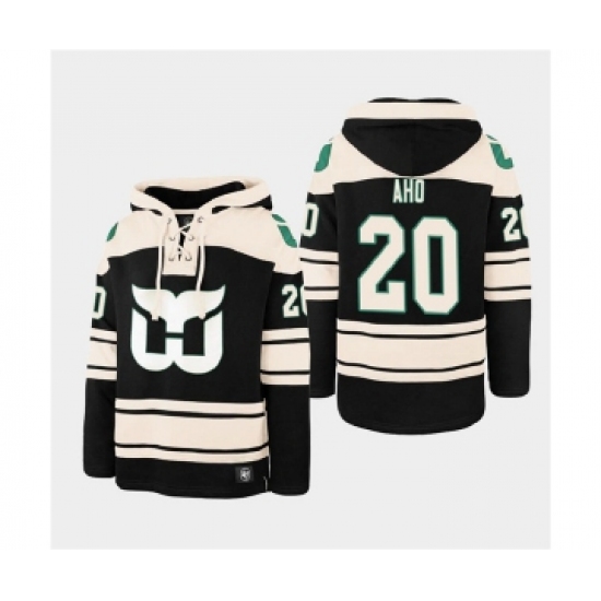 Men's Carolina Hurricanes #20 Sebastian Aho Black Ageless Must-Have Lace-Up Pullover Hoodie