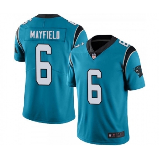 >Men's Carolina Panthers #6 Baker Mayfield Blue Vapor Untouchable Limited Stitched Jersey
