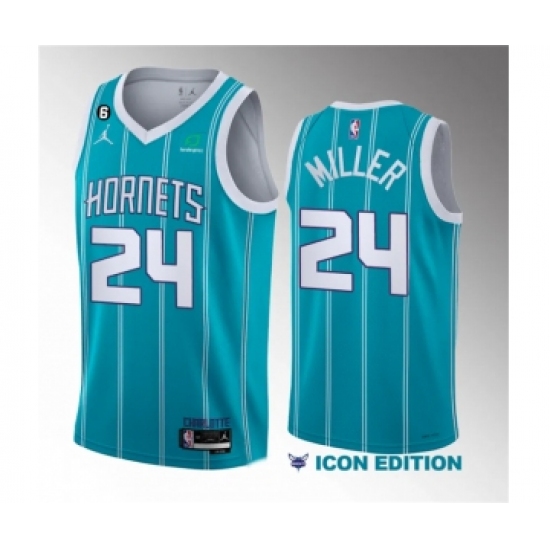 Men's Charlotte Hornets #24 Brandon Miller Teal 2023 Draft Icon Edition Stitched Basketball Jersey