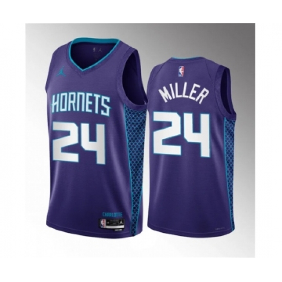 >Men's Charlotte Hornets #24 Brandon Miller Purple 2023 Draft Statement Edition Stitched Basketball Jersey