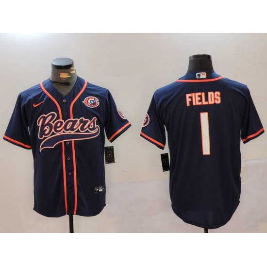 Men's Chicago Bears #1 Justin Fields Navy Blue Stitched MLB Cool Base Nike Baseball Jersey