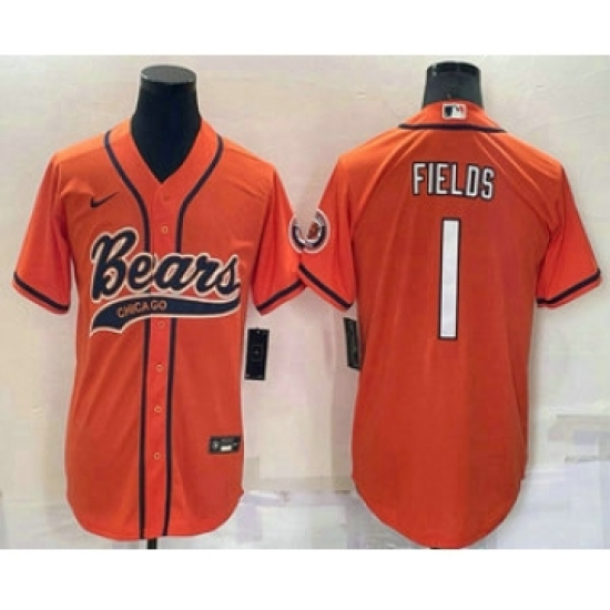 Men's Chicago Bears #1 Justin Fields Orange Stitched MLB Cool Base Nike Baseball Jersey
