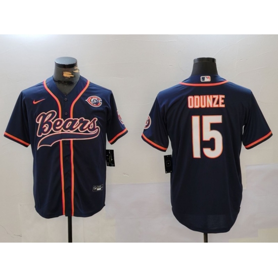 >Men's Chicago Bears #15 Rome Odunze Navy Throwback With Cool Base Stitched Baseball Jersey