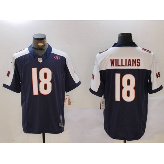>Men's Chicago Bears #18 Caleb Williams Navy White FUSE With 51 Stitched Jersey